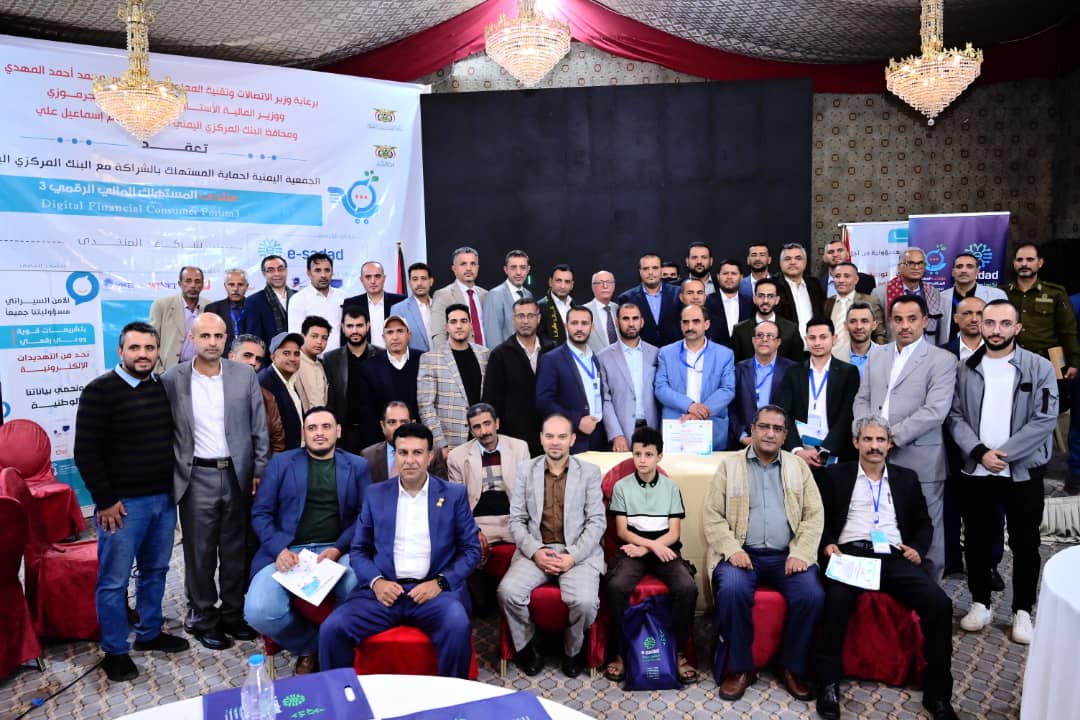 وفي الاختتام بحضور وكيل وزارة المالية لقطاع الايرادات محمد مثنى ومدير عام الهيئة اليمنية للمواصفات والمقاييس وضبط الجودة عبد الله العاطفي استعرض رئيس الجمعية اليمنية لحماية المستهلك فضل منصور أهداف المنتدى هذا المنتدى ودوره في تبادل المعلومات وخلق المعرفة والتعرف على أفضل الممارسات والتجارب والخبرات في مجال الخدمات المالية الرقمية.