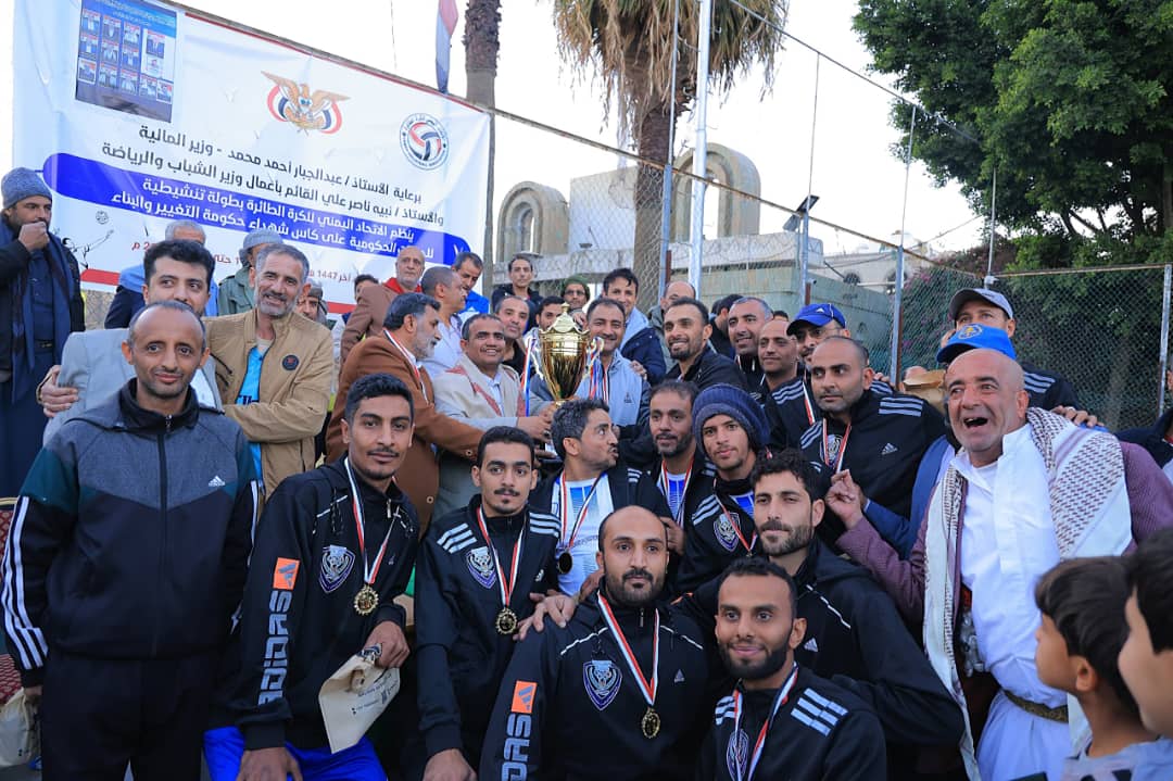 توج فريق وزارة الداخلية بطلا لبطولة الوزارات والمؤسسات والهيئات الحكومية للكرة الطائرة، نظمتها لجنة تسيير الاتحاد اليمني العام للكرة الطائرة، على كأس “شهداء حكومة التغيير والبناء”، برعاية وزير المالية ونائب وزير الشباب والرياضة وبمشاركة 12 فريقاً وزعت لمجموعتين.