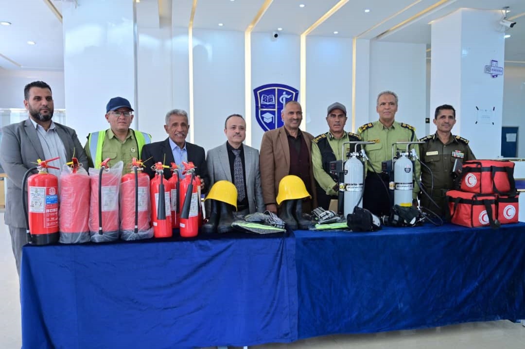 حيث سلـّم مدير عام التدريب بمصلحة الدفاع المدني، العميد محمد الفضلي، ومدير عام معهد الدفاع المدني العميد الركن عبدالكريم البخيتي، ومدير عام العلاقات والتوجيه بالمصلحة العقيد خالد الشراحي، لرئيس مجلس أمناء جامعة ابن النفيس الدكتور خالد الضرعي، معدات ووسائل الأمن والسلامة العامة التي اشتملت على” اسطوانات الإطفاء البودر، وثاني أكسيد الكربون، وأسطوانات الأوكسجين الخاصة بمواجهة الحرائق، وبدلات الإطفاء بجميع توابعها ومستلزماتها، وحقائب إسعافية “وذلك كأول جامعة يمنية يتم منحها هذه المعدات.