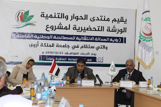 نظم منتدى الحوار والتنمية اليوم بالعاصمة صنعاء الورشة التحضيرية لمشروع رؤية العدالة الإنتقالية للمصالحة الوطنية الشاملة واحتضنته جامعة الملكة اروى ، والذي يعقد في إطار الإهتمام بحقوق الإنسان وتأصيل المشروع الوطني الحضاري الذي يعزز مبدئ الحوار والحفاظ على الوحدة الوطنية وترسيخ مداميك الدولة المدنية الحديثة.