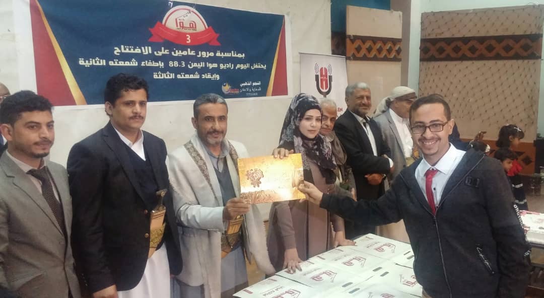 وكان الأخ محمد الرزيقي المدير التنفيذي لإذاعة هوا اليمن قد ألقى كلمه في الحفل استعرض من خلالها جهود الاذاعه خلال العامين الماضين من أجل عمل خارطة برامجيه تلبي متطلبات الشارع الوطني وتحقق الأهداف التي تأسست من أجلها الإذاعة مشيدا بجهود فريق العمل في الإذاعة ودوره في صناعه رسالة إعلامية هادفه استطاعت أن تجعل لإذاعة هوا اليمن موقع متقدم في المجتمع وتحضى بأكبر نسبه إستماع وتفاعل جماهيري منقطع النظير مشيدا بجهود رئيس مجلس ادارة الإذاعة والطاقم الهندسي الذي استطاع أن يوصل تردد الإذاعة 88.3 إلى معظم المحافظات وفي وقت قياسي
